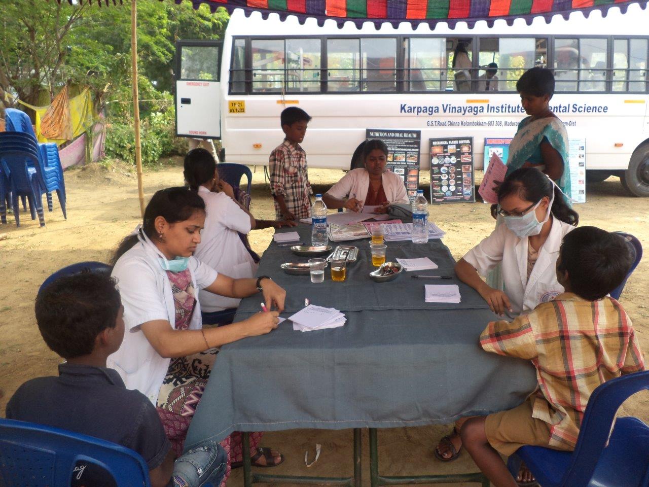 During a visit to our office a few weeks ago, Sowmiya told us that the Vinayaga College organizes free dental camps in rural villages in the outskirts of Chengalpattu, where the college is based. A special department of Public Health Dentistry inside the college runs over 200 Camps every year to follow the rules of the Dental Council of India. So we asked Sowmiya to talk to the college’s officials and do her best to include our villages in the college scheme.