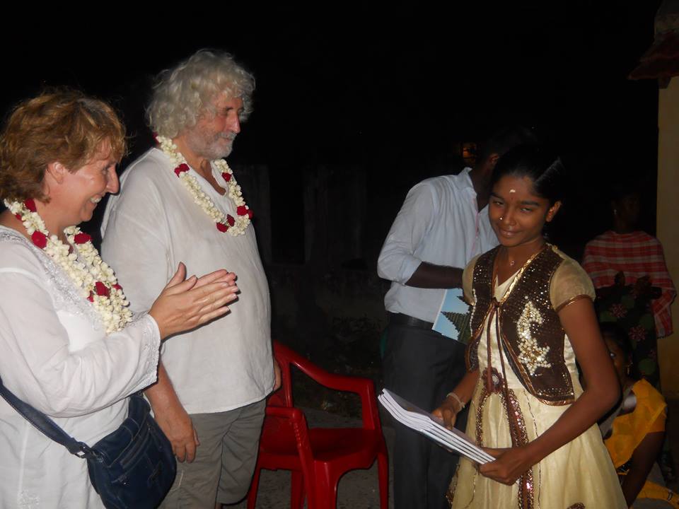 At the inauguration, where two tourists attended, we distributed notebooks, pen and pencils. A new teacher has been appointed, she is the daughter of a woman that we already know, she received a small loan from us to develop her small business, 15.000 rupees that she used to buy a second hand weel cart to sell fruits and vegatables on the road.